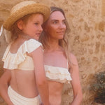Voor een extra leuke twist kun je jouw look matchen met die van je dochter! De Anglaise Bikini voor meisjes heeft een ander design, maar dezelfde prachtige print. Het perfecte duo voor een stijlvolle zomer. Shop de Anglaise Bikini Women en maak je stranddag onvergetelijk met Salted Stories.