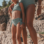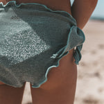 Deze Glitter Bikini is de perfecte keuze voor meisjes die willen schitteren op zonnige dagen. Gemaakt van een luxe knit swimwear-stof met een subtiele glitter, zorgt deze bikini voor een sprankelende look. De prachtige kleur Green Bay geeft een frisse, zomerse uitstraling, terwijl de ruffles een schattig en meisjesachtig accent toevoegen.