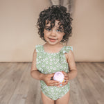 Dit Salted Stories meisjes badpak met all-over bloemenprint straalt pure zomerse frisheid uit. De zachte groene basis wordt gecombineerd met kleine verfijnde bloemetjes, wat zorgt voor een lieve en tijdloze uitstraling binnen de Spring Summer 2026 collectie.