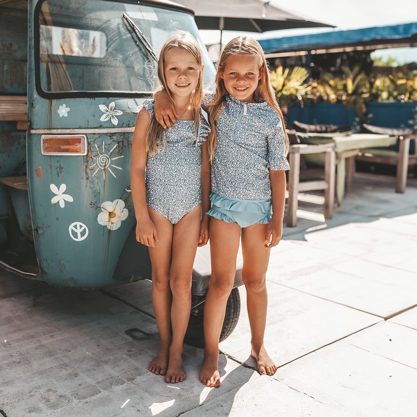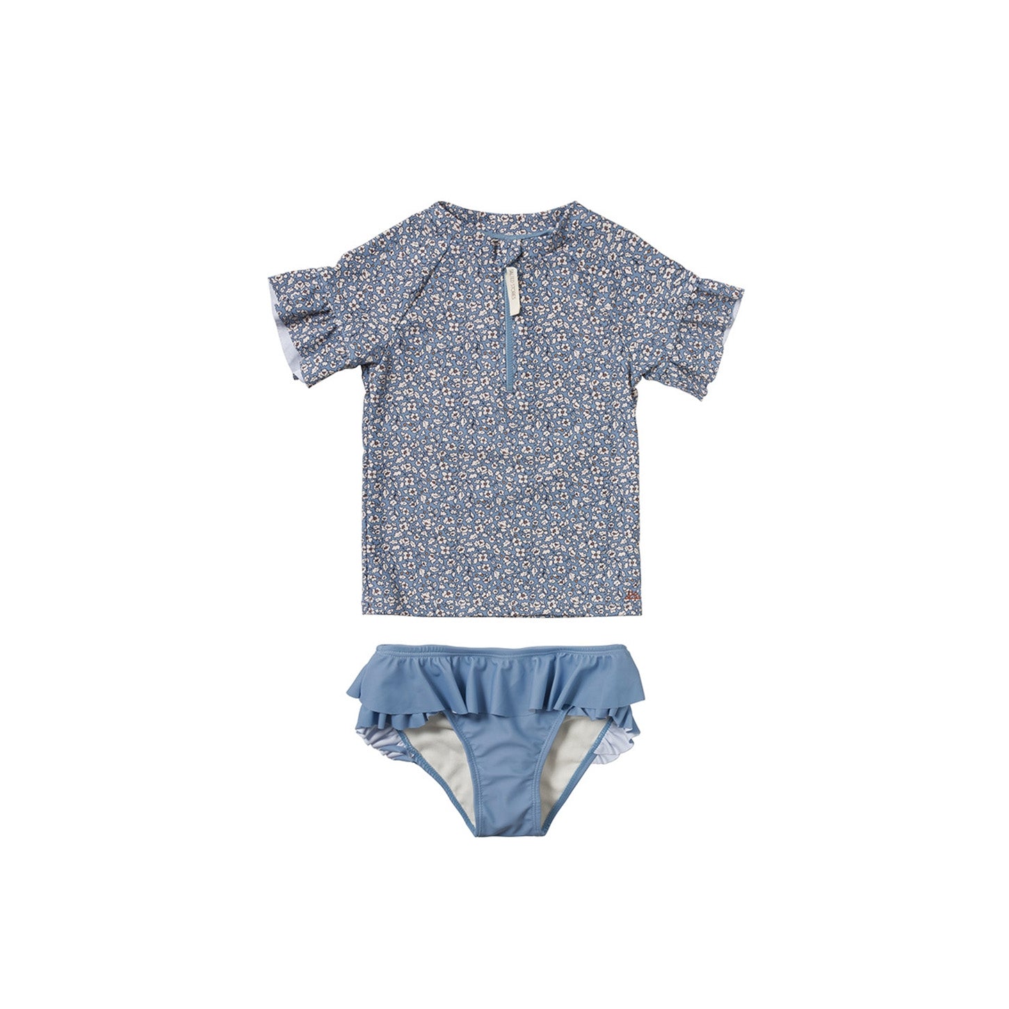 Das Bade-T-Shirt-Set Sabrina besteht aus einem Schwimm-T-Shirt und einer Bikinihose und ist in den Größen 62/68 bis 134/140 erhältlich. Das Badeshirt verfügt über einen Kunststoffreißverschluss mit Kinnschutz, der durch die Sonne nicht zu warm auf der Haut wird. Darüber hinaus hat das Bade-T-Shirt kurze Ärmel mit Rüschendetails, die perfekt zu den Rüschendetails der Bikinihose passen. Die Bikinihose des Sabrina-Sets ist vollständig gefüttert und besteht wie das Bade-T-Shirt aus normalem Frottee. Beide Artikel des Sabrina-Schwimm-T-Shirt-Sets trocknen schnell, wenn Ihr Kind aus dem Wasser kommt, verfügen aber auch über einen UPF50+-Schutz. Das bedeutet, dass sie 98 % der UV-Strahlen blockieren und die Haut besser vor Sonnenbrand schützen. Mit dem Schwimm-Tee-Set Sabrina kann Ihr Kind unbesorgt Wasserspaß genießen! Haben Sie dieses schöne Bade-T-Shirt und die passende Bikinihose bereits in Ihren Warenkorb gelegt?