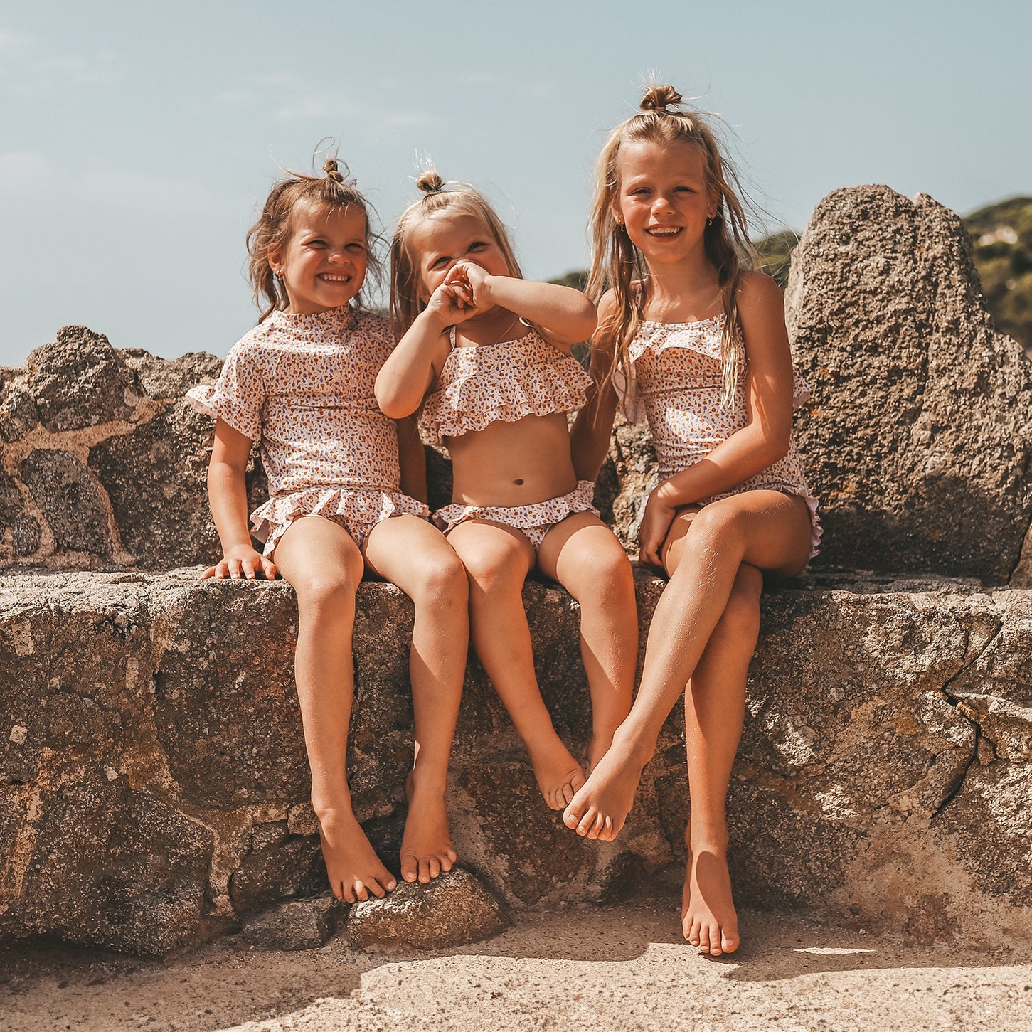 Das Sati-Bikini-Set ist an einem Tag am Strand oder am Pool unverzichtbar und in den Größen 98/104 bis 134/140 erhältlich. Sowohl das Bikini-Oberteil als auch das Bikini-Unterteil sind für maximalen Komfort vollständig gefüttert und passen sich gut dem Körper Ihres Kleinen an. Das Bikinioberteil des Sati-Bikini-Sets verfügt über verstellbare Schulterträger, sodass Sie die ideale Passform erzielen können. Schließlich verfügt das Sati-Bikini-Set über einen UPF50+-Schutz, der Ihr Kind besser vor Sonnenbrand schützt. In Kombination mit dem handgemalten Blumendruck und den Rüschendetails ist das Sati-Bikini-Set beim Wasserspaß unverzichtbar!