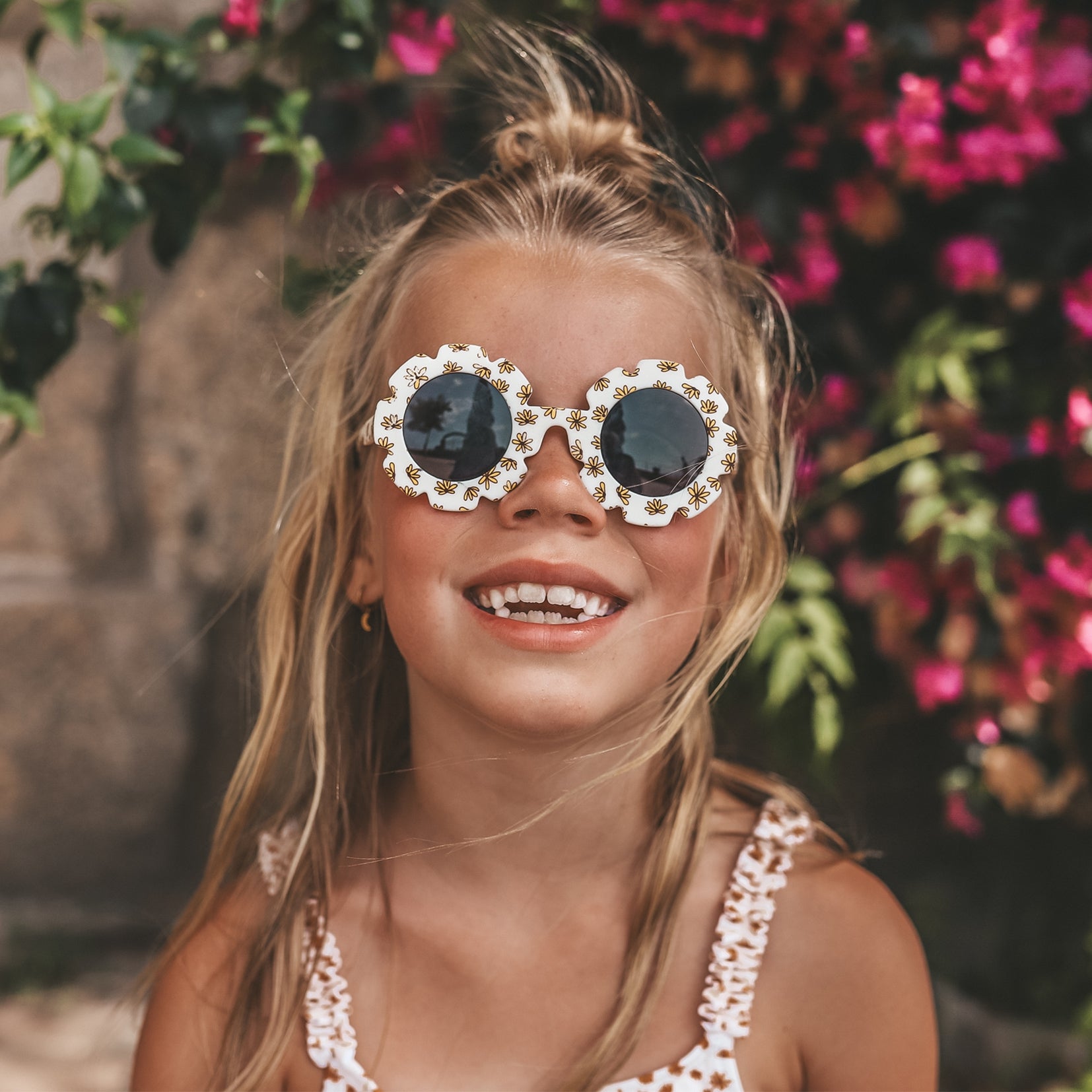 An sonnigen Tagen sind Sierra-Sonnenbrillen natürlich unverzichtbar. Die Sonnenbrille verfügt über einen UV-400-Schutz und wird in einem praktischen Etui mit Reinigungstuch geliefert. Diese süße Brille in Form einer Blume mit Blumendruck passt perfekt zum Sarina-Body oder zum Sadie-Bikini-Set und ist für Kinder jeden Alters ab ca. 2 Jahren geeignet.