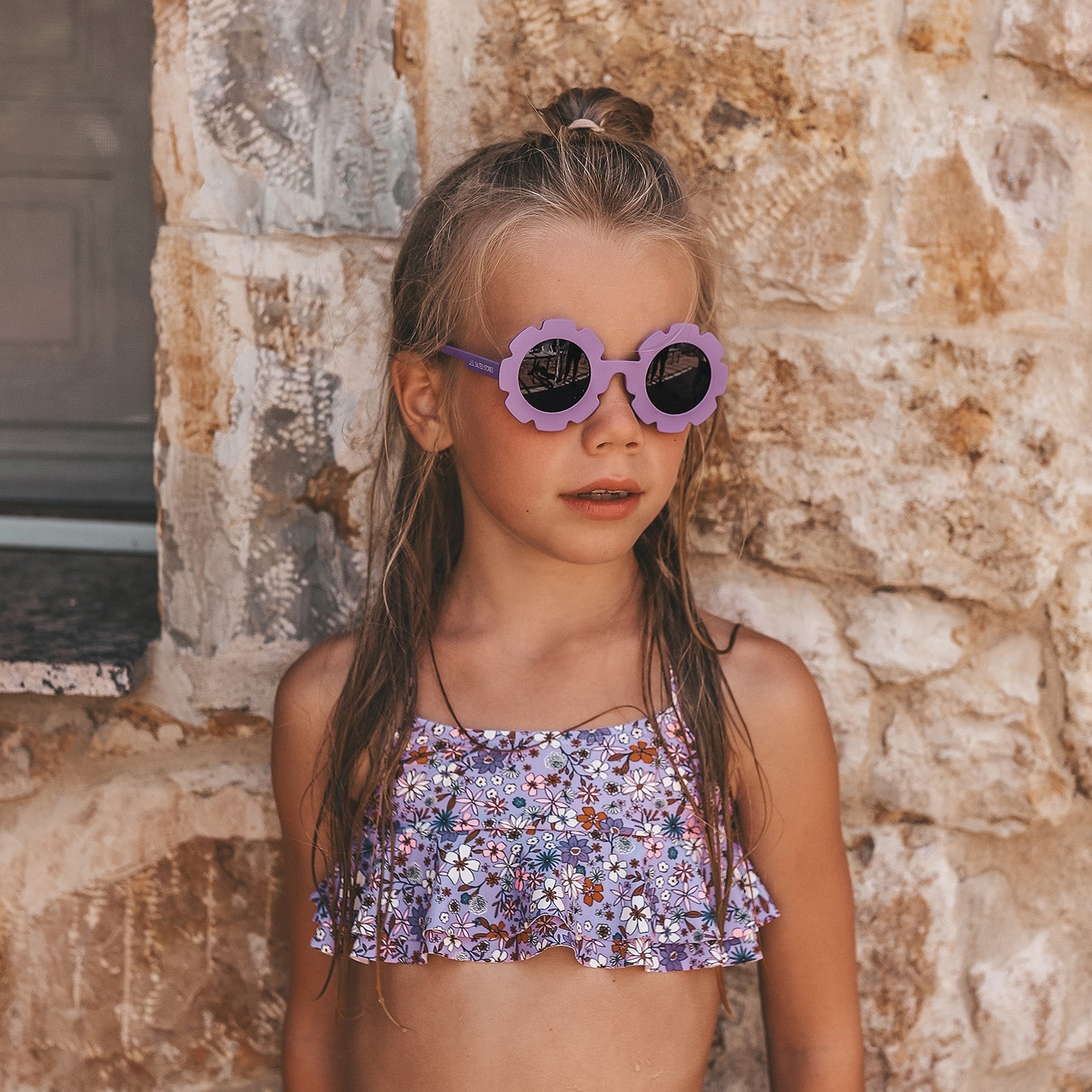 An sonnigen Tagen darf die Sonnenbrille Sierra nicht fehlen! Die Sonnenbrille wird in einer praktischen Box mit Reinigungstuch geliefert und verfügt über einen UV-400-Schutz. Diese süße Sonnenbrille in Blumenform passt perfekt zum Sofia-Badeanzug oder zum Suus-Bikini und ist für Kinder ab ca. 2 Jahren geeignet.