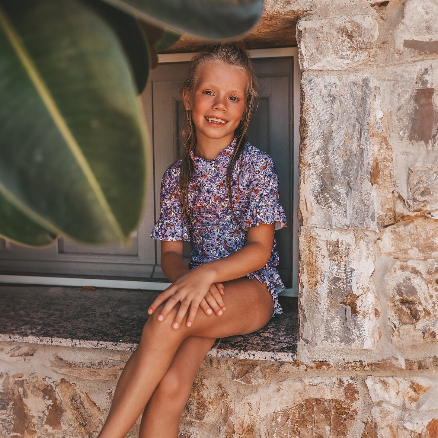 Das Suzanne Schwimm-T-Shirt-Set besteht aus einem Schwimm-T-Shirt mit passender Hose und ist in den Größen 62/68 bis 134/140 erhältlich. Das Schwimmshirt verfügt über einen Kunststoffreißverschluss mit Kinnschutz, der sich durch die Sonne nicht auf der Haut erwärmt und beim Wasserspaß das Kinn nicht beschädigen kann. Die kurzen Ärmel sind mit Rüschen versehen und passen perfekt zu den Rüschen der passenden Bikinihose. Die Bikinihose des Suzanne-Bade-T-Shirt-Sets ist vollständig gefüttert und verfügt, wie das Schwimm-T-Shirt selbst, über einen UPF50+-Schutz. Das bedeutet, dass das Set Ihr Kleines besser vor Sonnenbrand schützt, da es 98 % der UV-Strahlen blockiert. Ideal, oder? Und der einzigartige Blumendruck rundet den Look ab, besonders wenn Sie das Suzanne-Bade-T-Shirt-Set mit der Sierra-Sonnenbrille kombinieren! Haben Sie dieses schöne Set bereits in den Warenkorb gelegt?