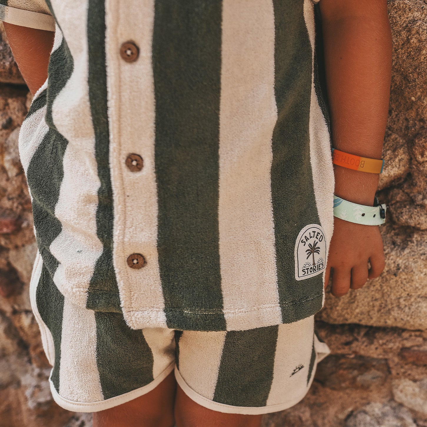 Zet de toon voor een zomer vol waterplezier met de Wide Stripe Sporty Shorts! Deze shorts zijn een nieuwe stijl van Salted Stories en niet zomaar een must-have, maar een statement voor in het restaurant, of naar het zwembad. De perfecte keuze voor je kleine zonnekoning! Gemaakt van superlichte, ademende stof bieden deze shorts ultiem comfort bij elke beweging.