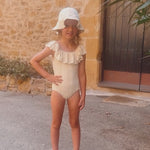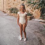 The Anglaise Swimsuit by Salted Stories is the must-have for girls this summer. This stylish swimsuit, from the Costa Del Sol collection, combines fashion and functionality with the trusted quality of last year. The refined Anglaise embroidery and the elegant shade Shortbread give the swimsuit a luxurious and timeless look.