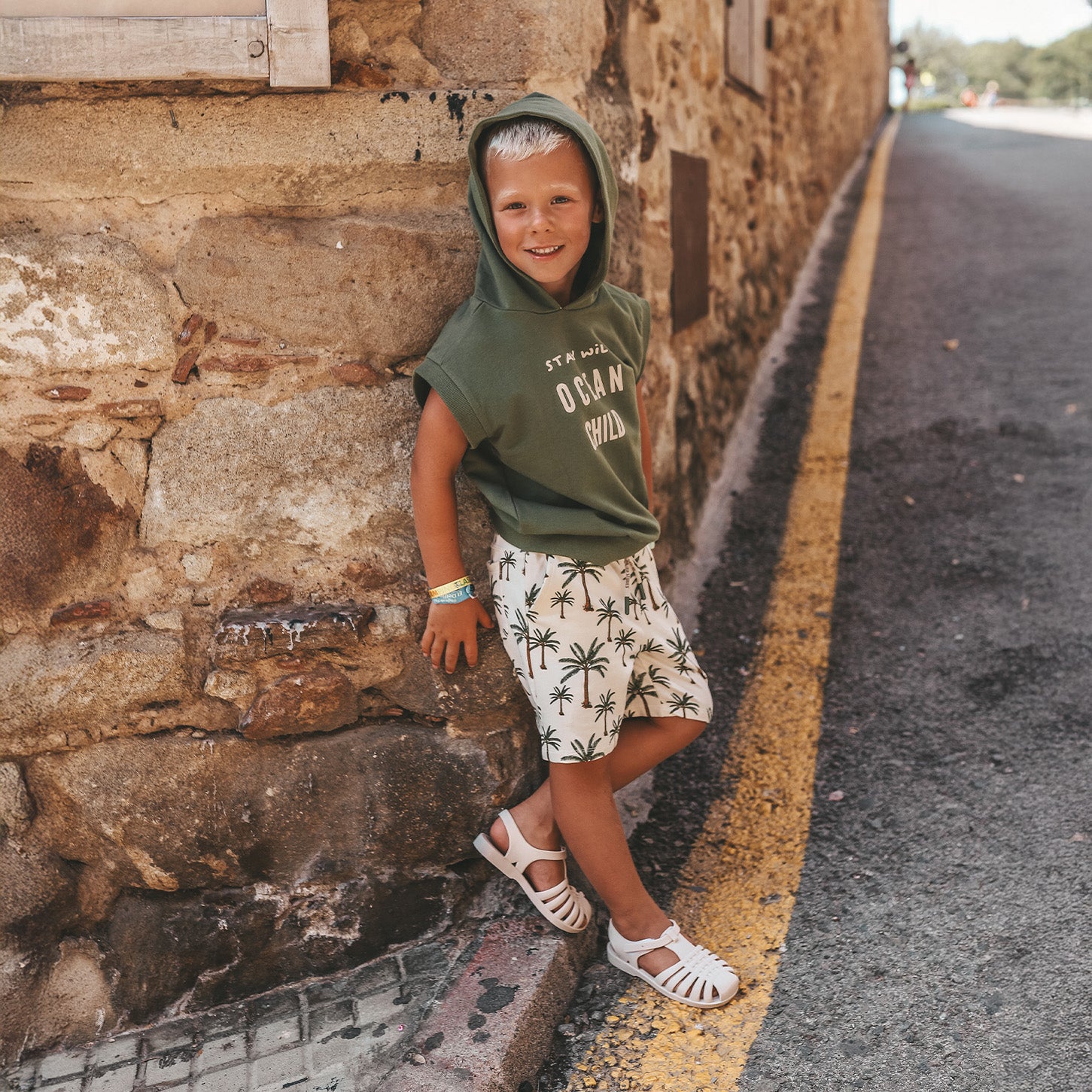 Ready for adventure, with shorts that move like palm trees in the sun. The Crown Tree Shorts are the perfect choice for boys this summer! Made from fine French Knit fabric, consisting of 95% cotton and 5% elastane, these shorts offer the ideal combination of breathable comfort and light stretch, perfect for sunny days and water adventures.