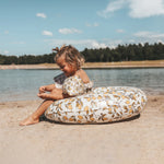 This inflatable swimming ring from Salted Stories makes a day at the beach or pool complete! Floating on the water is much more fun with this colorful swimming ring. The swim ring has a playful print and how fun? We have matching swimwear in the same print. Love Salted Stories!