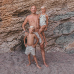 Let your summer start with fresh lemons and sunny vibes! Looking for the perfect swim shorts for your child? The Lemons Swim Short are the ideal choice! These cheerful shorts with a hand-drawn lemon print protect against the sun thanks to the UPF50+ fabric, which blocks 98% of harmful UV rays. The mesh inner briefs provide extra comfort, while the elastic waistband and drawstring closure ensure the shorts fit perfectly, whether you're playing in the water or running on the beach.