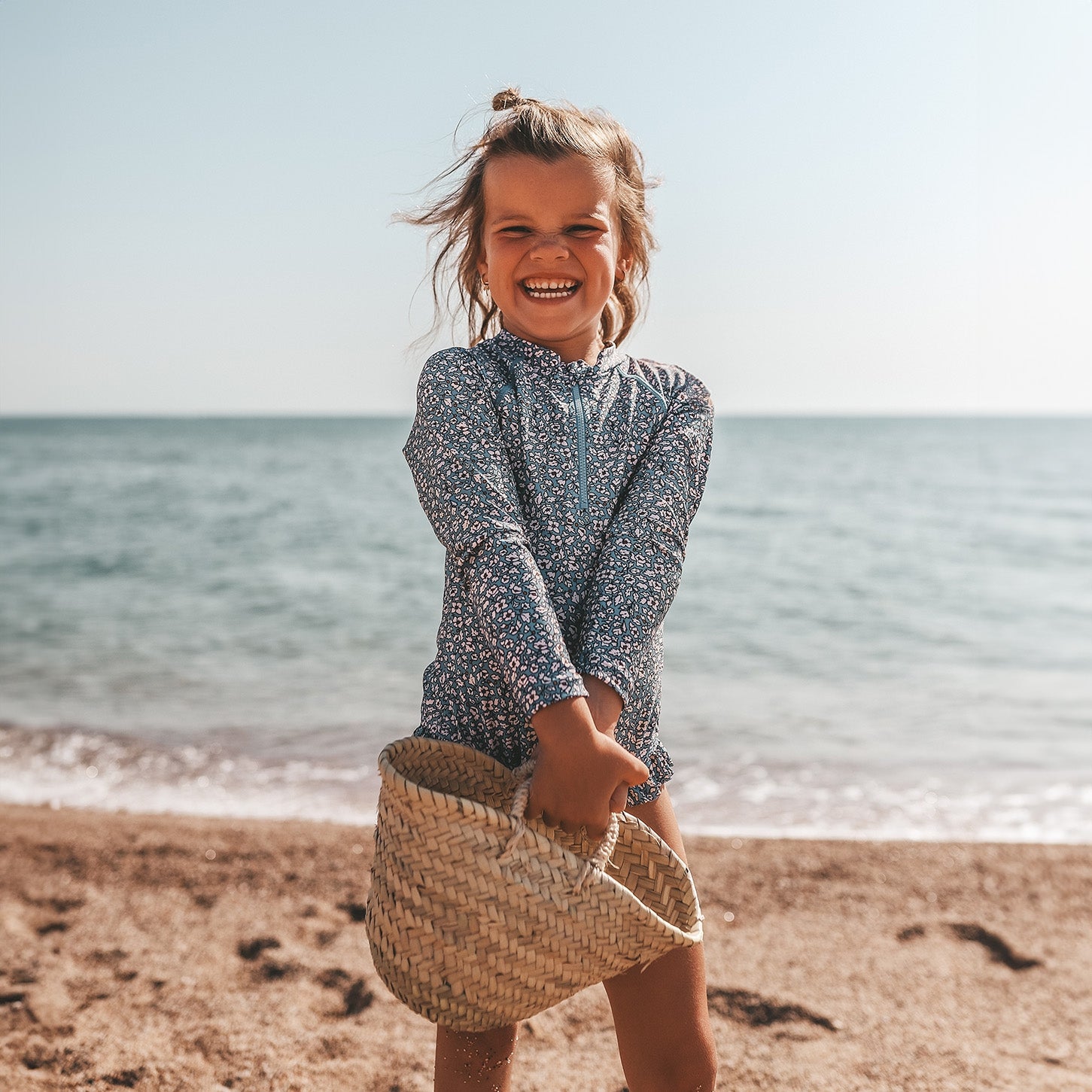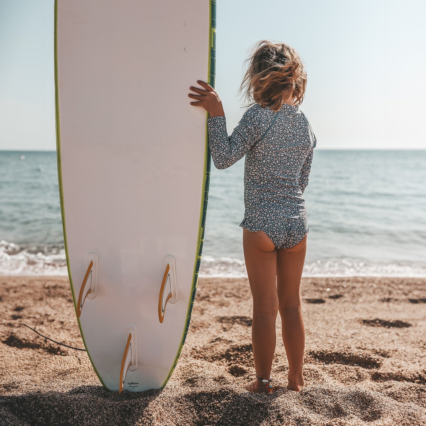 * Bodysuit with UPF50+ rating that helps protect your child from the sun.