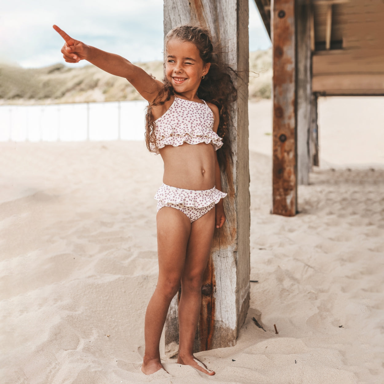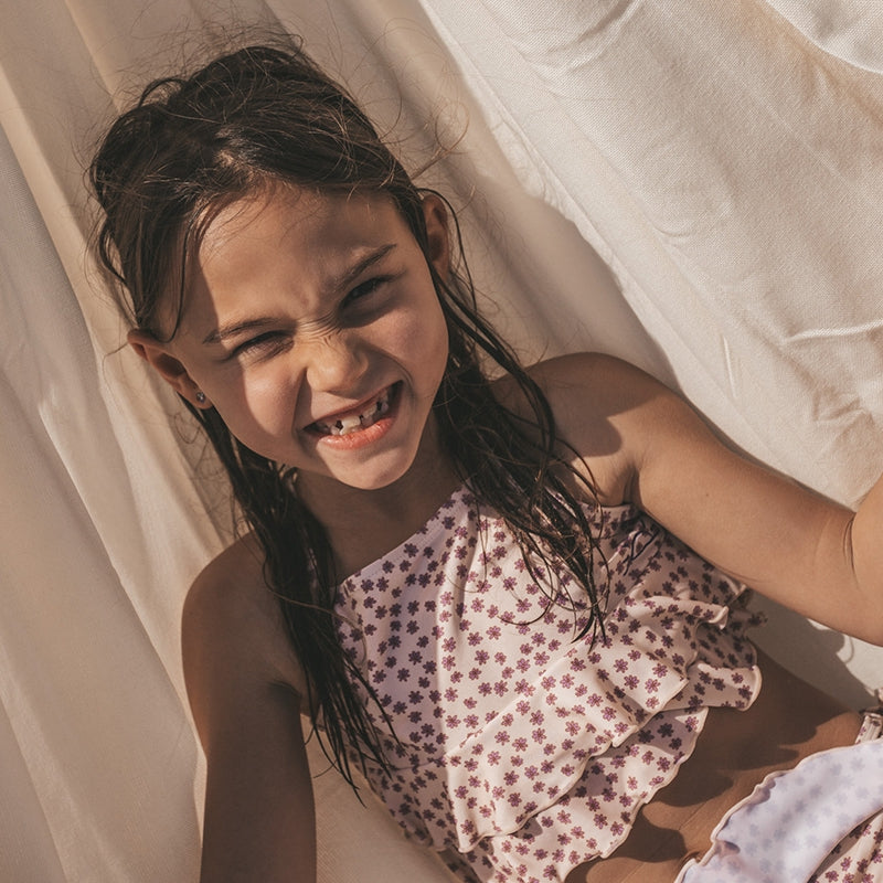 The Sami Bikini is perfect for little beach princesses who love to play in the water. Made of UPF 50+ fabric and fully lined, this floral print bikini offers maximum sun protection and a comfortable fit. With its crossover straps and romantic ruffles, your little one will look super cute, too.