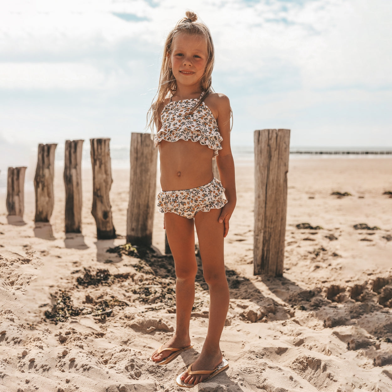 This bikini is perfect for little fashionistas who love to play in the water. This bikini set features crossover straps, fun ruffles and adjustable straps for the perfect fit. Made of high quality UPF 50+ fabric and fully lined, this bikini provides comfort and sun protection while playing at the beach or pool.