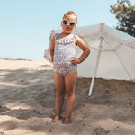 Embrace the wild side with the Sofia swimsuit, available from size 62/68 to 134/140. The swimsuit with lilac leopard print is finished with ruffles on the collar, which extend all the way along the shoulder straps to the back. The Sofia swimsuit is lined, dries quickly when your child comes out of the water and has UPF50+ protection. This means that it blocks up to 98% of UV rays and better protects your little one from the sun! Water fun in the sun has never been as much fun as with the Sofia swimsuit! Have you already put this fine item in your shopping cart?