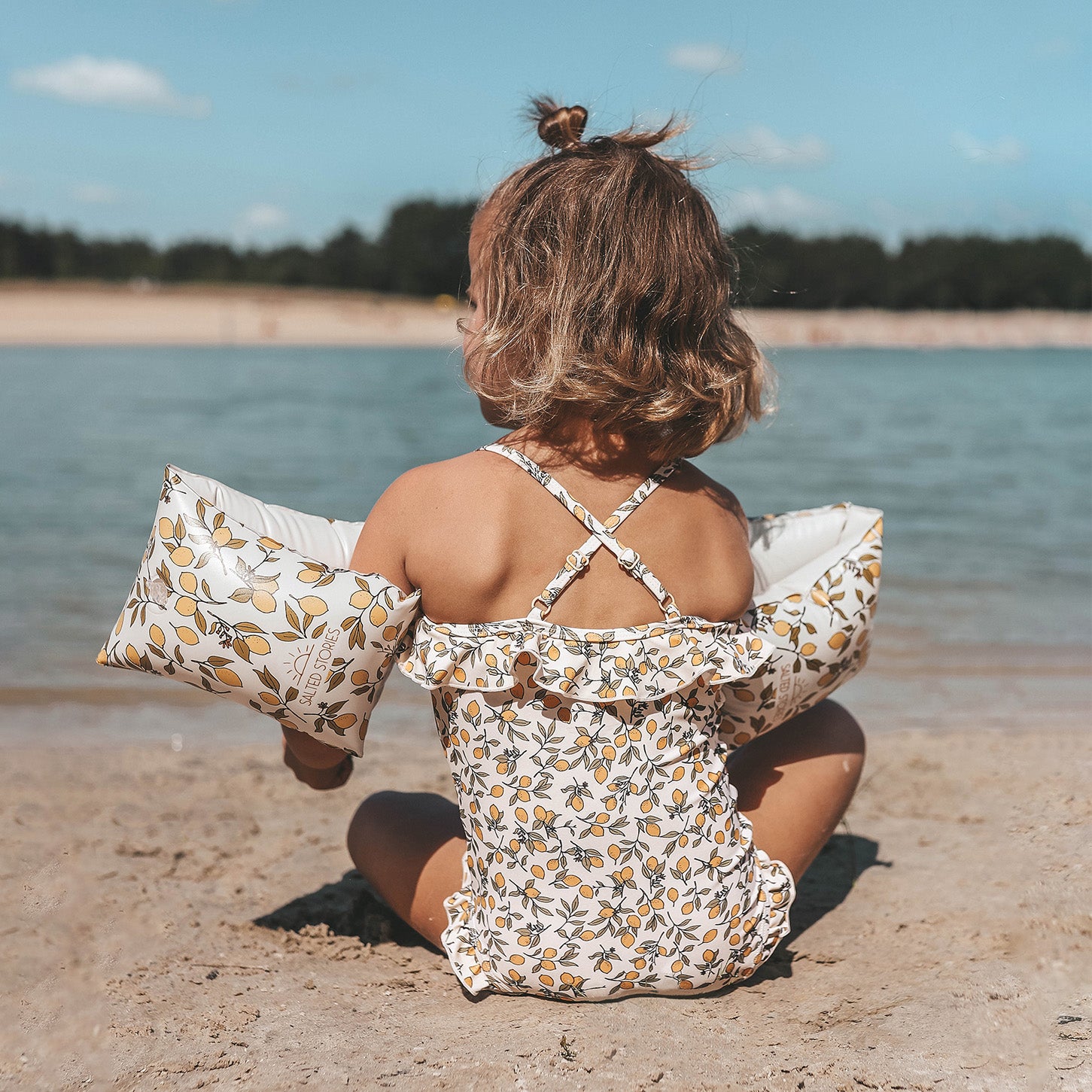 Dit badpakje is geïnspireerd om de zorgeloze zomers van Zuid-Spanje. Speciaal ontworpen door ons eigen designteam voor jouw meisje! Maak de Lemons Swimsuit look compleet met de Lemons Waterschoenen en de bijpassende zonnehoed, en laat jouw kindje stralen."