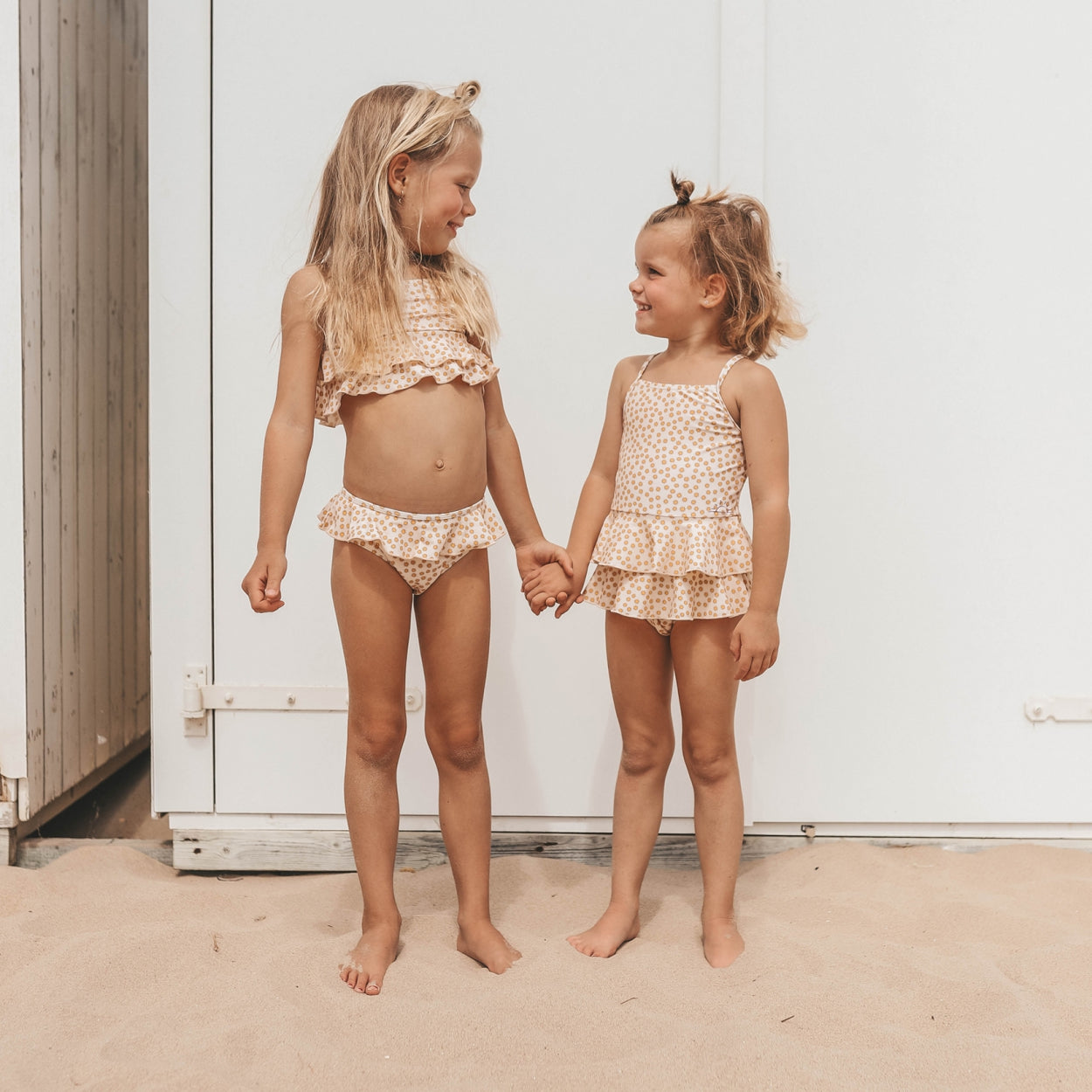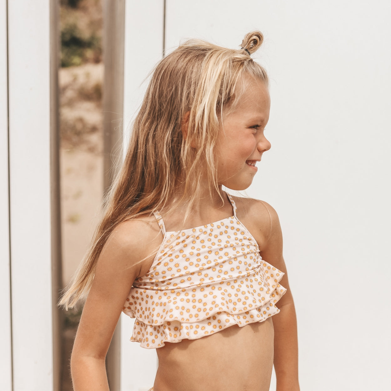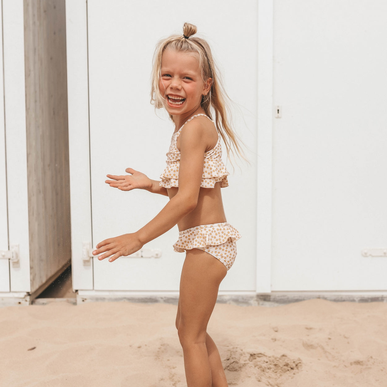 De Sami Bikini is perfect voor de kleine strandprinsesjes die graag in het water spelen. Gemaakt van UPF 50+ stof en volledig gevoerd, biedt deze bikini maximale bescherming tegen de zon en een comfortabele pasvorm. Met de gekruiste bandjes en romantische ruffles ziet je kindje er ook nog eens super schattig uit.