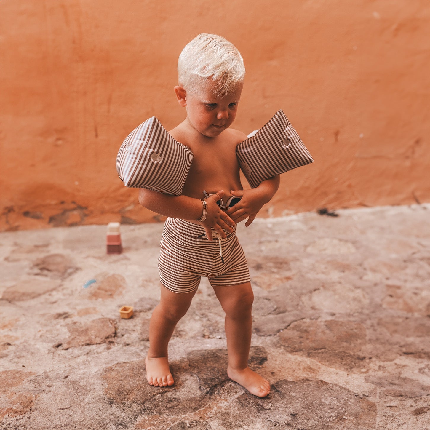 Met de Scott zwembroek heb je altijd een streepje voor! Deze strakke zwembroek is verkrijgbaar vanaf maat 62/68 tot 110/116 en is uitgevoerd in een sneldrogende badstof met een subtiel ribpatroon. De stof rekt goed mee en sluit nauw aan rond de billen van jouw kleintje. De Scott zwembroek is volledig gevoerd voor maximaal comfort en heeft een elastische tailleband met extra trekkoord. Ook heeft de zwembroek een UPF50+ bescherming, die de huid van jouw kindje beter beschermd tegen verbranden in de zon. Met de Scott zwembroek is jouw kindje klaar voor waterfun in the sun!