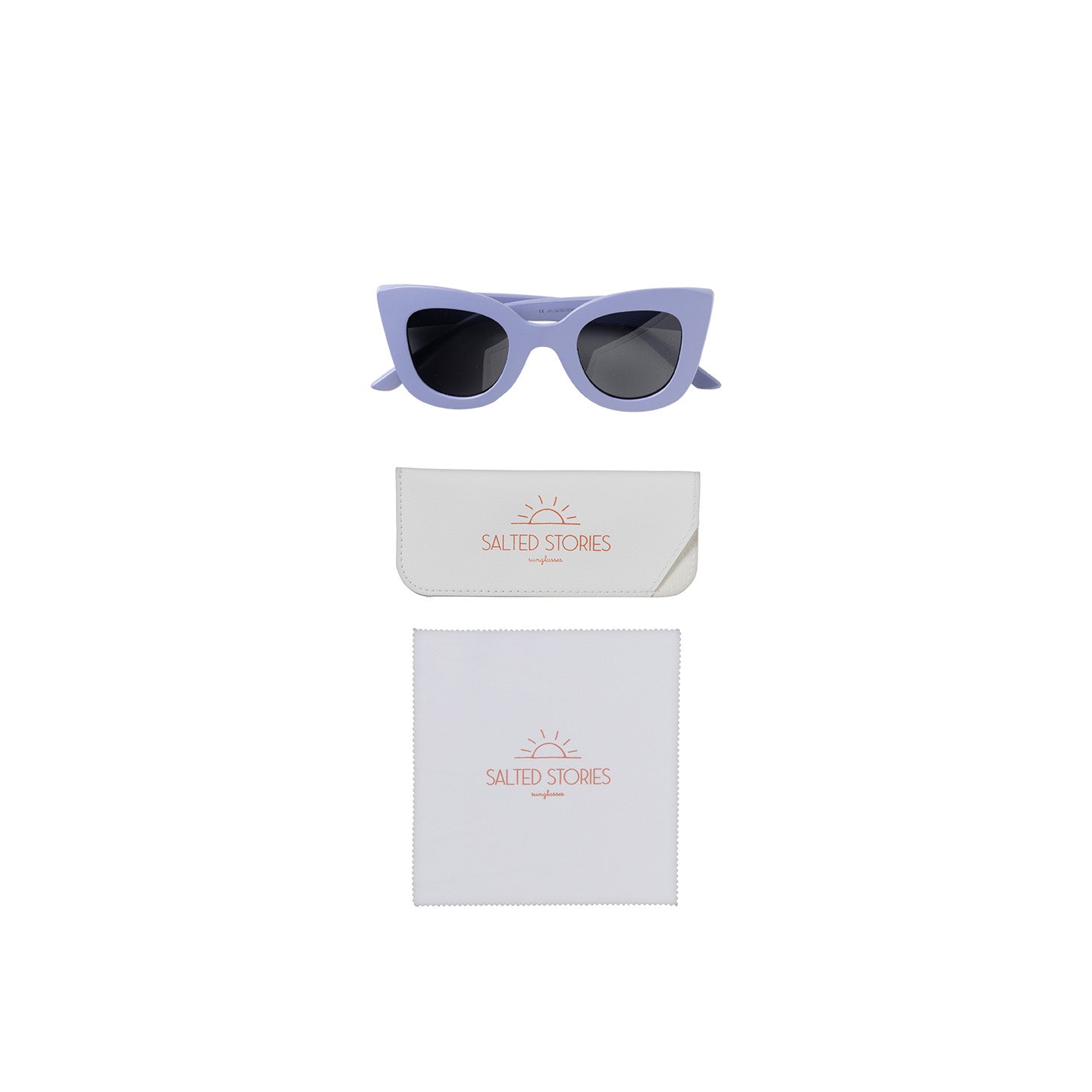 De perfecte accessoire voor een zonnige zomer! De Solid Cat Eye Sunglasses zijn de ideale zonnebril voor meisjes die er trendy uit willen zien en tegelijk beschermd willen worden tegen de zon. Deze bril heeft een elegante Cat Eye vorm en is uitgevoerd in een stijlvolle violette kleur, die perfect past bij de Sparkly Fleurs items.