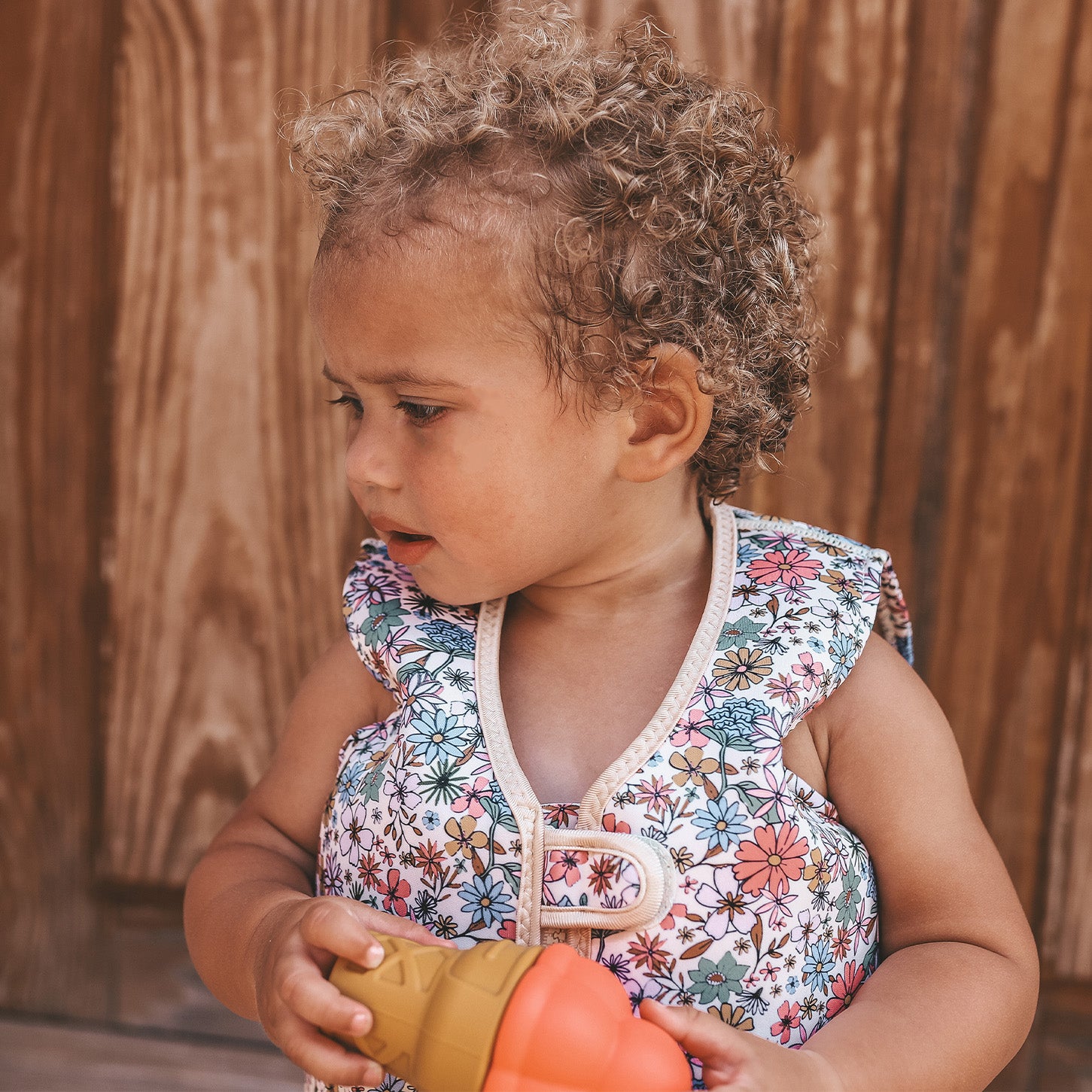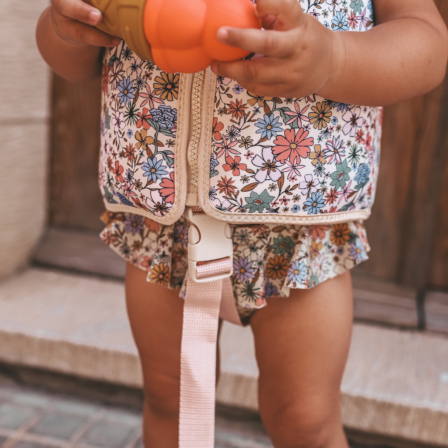 Het Sparkly Fleurs Floating Vest is ontworpen met een extra gesp die je door de benen heen vastmaakt, zodat je kleintje nooit uit het vest kan glippen. Dit maakt het vest ideaal voor zowel beginners als meer ervaren jonge zwemmers. Naarmate je kindje steeds zelfverzekerder wordt in het water, kunnen de drijfelementen in het vest geleidelijk worden verwijderd (van A-elementen tot D-elementen), zodat het vest zich aanpast aan de zwemvaardigheden van je kindje.