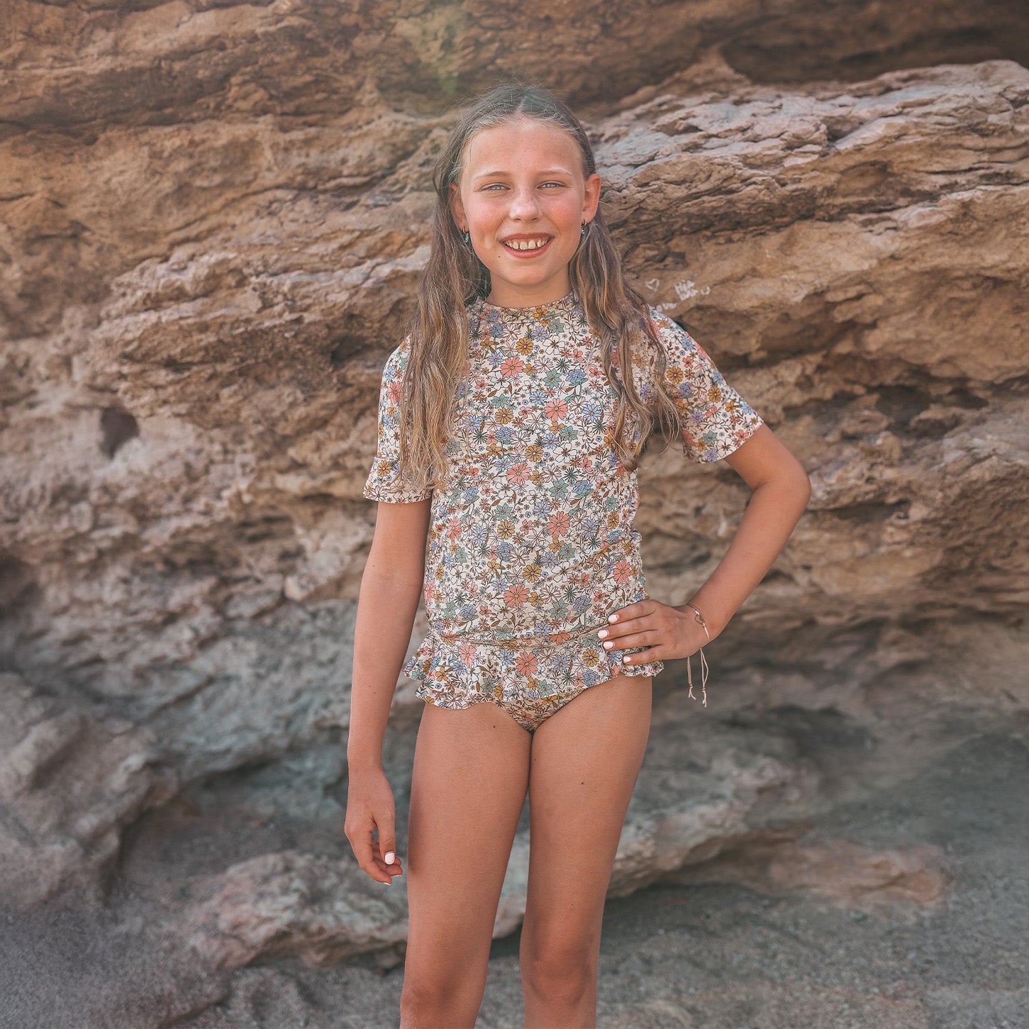 De Sparkly Fleurs bikini set is een goede keuze voor stijl maar ook voor bescherming op het strand. Met een unieke bloemenprint in een glinsterende stof is deze bikini een echte eye-catcher op het strand. De stof is voorzien van UPF50+ bescherming, waardoor schadelijke UV-stralen effectief worden geblokkeerd. De set is volledig gevoerd, wat zorgt voor extra comfort en een zacht gevoel op de huid. De achterkant is voorzien van een rits, die het makkelijk maakt op het uv-shirt uit en aan te doen.