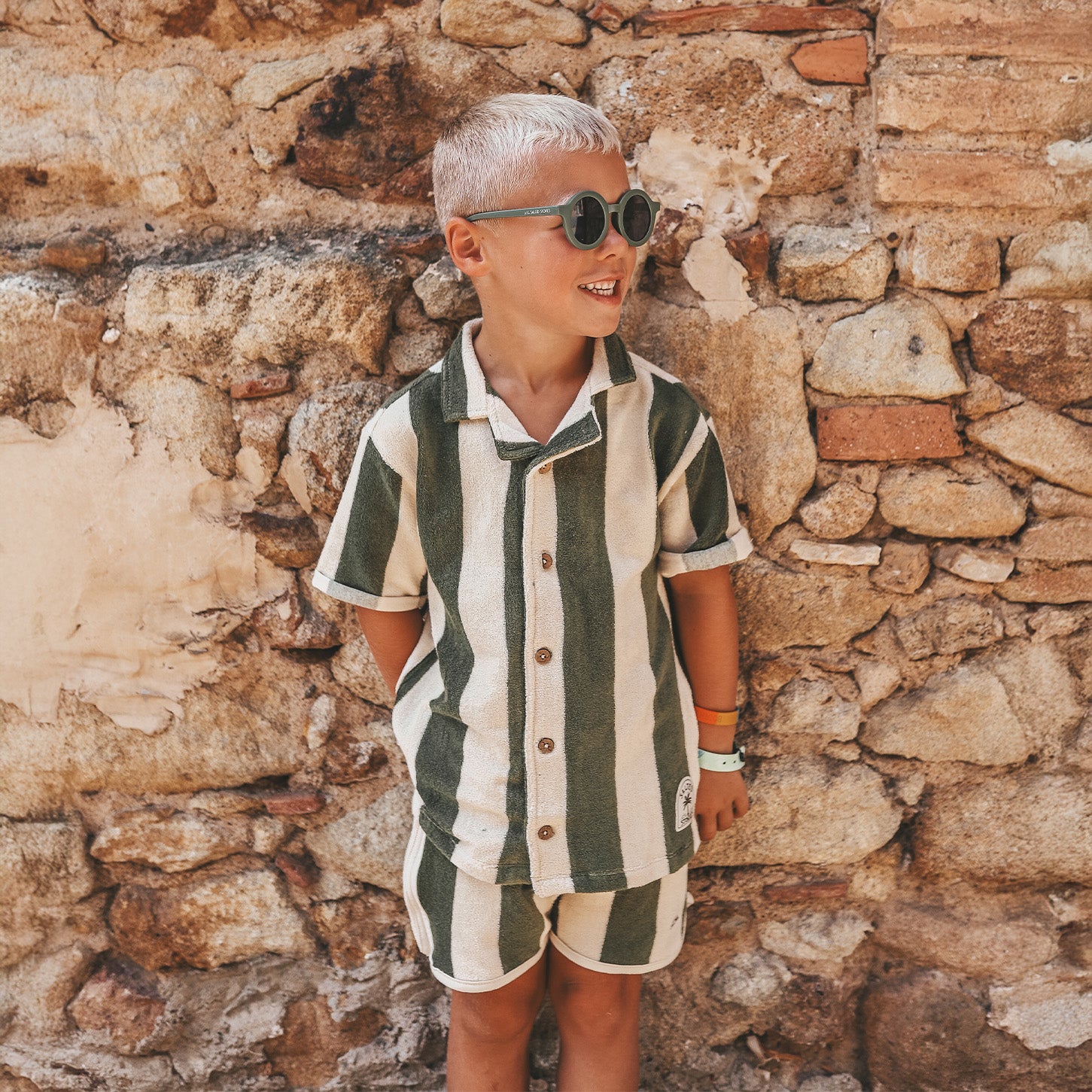 Combineer met de Wide Stripe Sport Shorts voor de ultieme co-ord voor een stralende look en laat je kind stralen in stijl. Het Wide Stripe Loose Shirt is niet zomaar een kledingstuk – het is een zomerstatement. Maak je kids klaar voor splash and play!